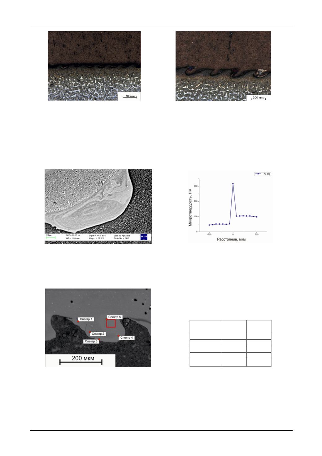 сварного соединения составило примерно 3:2 соответственно (рис. 4, табл. 1).